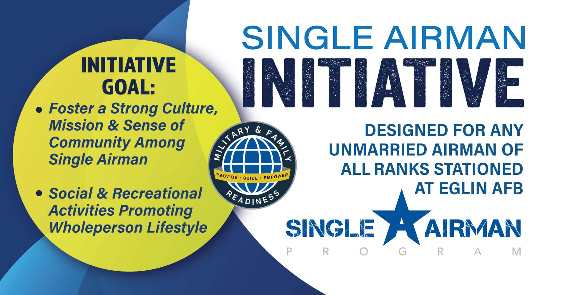 Designed for any unmarried airman of all ranks stationed at Eglin AFB.